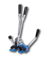 Generalmente utilizada para paquetería o bultos de no muy elevado peso, brinda una simple solución incluyendo en la misma el tensor para el fleje y la pinza para apretar el precinto de chapa, al accionar la misma la máquina automáticamente corta el fleje sobrante, logrando optimizar el uso de fleje, y obteniendo un sellado seguro y prolijo. Se puede utilizar con fleje plástico de 10, 13 y 16 mm.